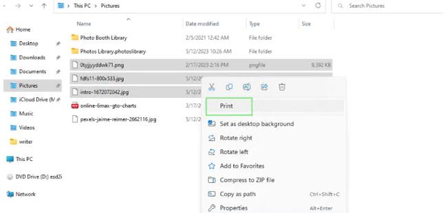 步骤 2. 打开“打印”对话框:选择所有图像后,右键单击其中一张图像,然后从上下文菜单中选择“打印”。这将打开“打印图片”对话框。
