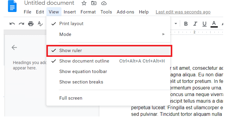 单击查看并确保选中显示标尺选项。