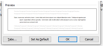 单击段落对话框中的缩进和间距选项卡。