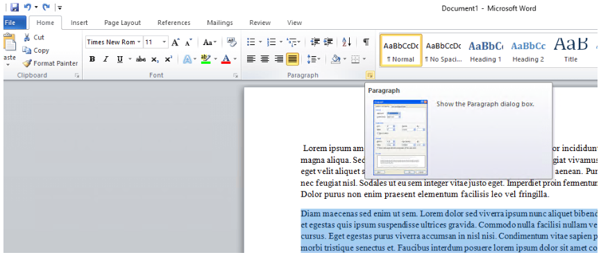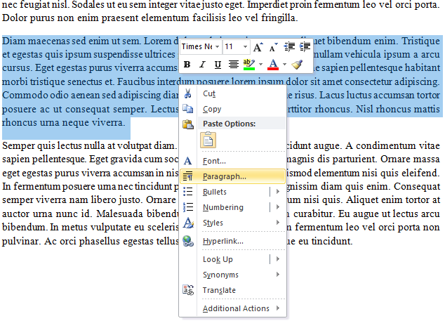 右键单击突出显示的文本并选择段落