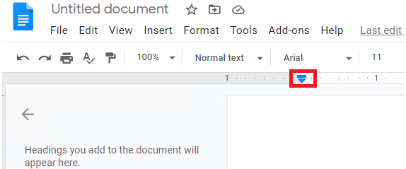 在位于顶部的标尺上,您会看到一个蓝色倒三角形和一个蓝色矩形。 三角形代表Left Indent的位置,矩形代表First Line Indent 的位置。