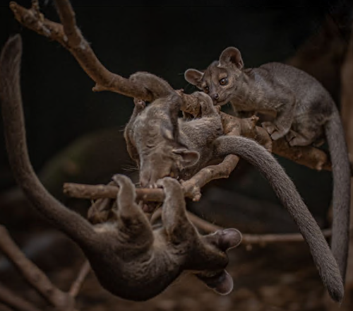 另一个繁殖成功案例是七个月大的窝三胞胎,它们正在切斯特动物园的马达加斯加围栏内玩耍。Fossas 是其野生栖息地中的顶级捕食者,但由于栖息地丧失而受到高度威胁。
