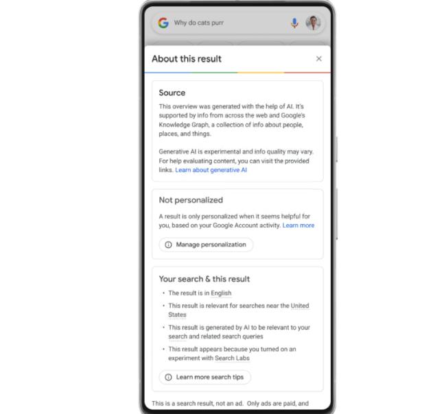谷歌很快计划将“关于此结果”添加到 SGE 回复中包含的各个链接中,以便人们可以更多地了解支持人工智能概述中信息的网页。