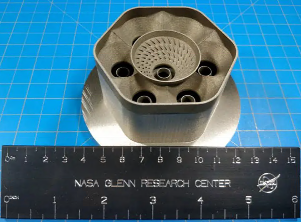 这个涡轮发动机燃烧室(燃料-空气混合器)是在 NASA Glenn 进行 3D 打印的,它是具有挑战性的部件之一,可以从应用新型 GRX-810 合金中获益。