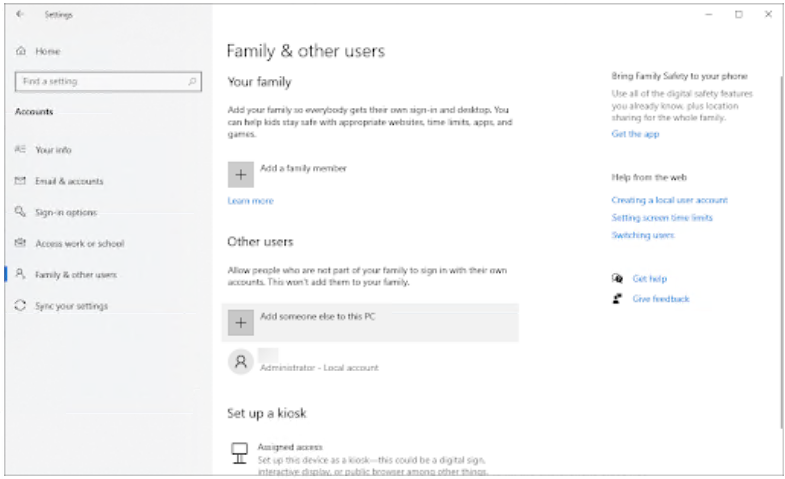 向下滚动并单击将其他人添加到此 PC按钮。为自己创建新用户的最快方法是离线 - 我们将使用这种方法来创建帐户。