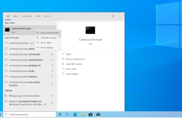 在搜索框中输入命令提示符。当您在结果中看到它时,右键单击它并选择Run as Administrator 。如果您使用的是没有管理员权限的本地帐户,请先单击此处。