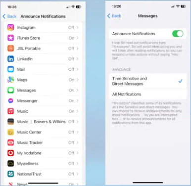 尽管我一直通过 AirPods 收到所有消息的 Siri 通知,尤其是在下班回家的火车上或在健身房连接的 iPhone 或 iPad 播放设备被锁定时,我发现我还可以选择哪些通知是 Siri传递到我的耳朵里。