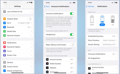 它称为 Announce Notifications,当您佩戴 AirPods 时,Siri 会宣布来自消息和提醒等应用程序以及受支持的第三方应用程序的传入通知。