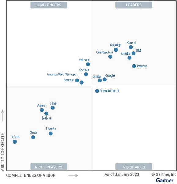 展望 2023 年剩余时间及以后,通过用户至上的设计、AI 优先的功能和加速实现价值来提升客户体验将是我们的北极星。我们计划在接下来的几个月内宣布激动人心的新功能,以使这一愿景成为更多组织的现实。 我们很荣幸成为 2023 年 Gartner? 企业对话式 AI 平台魔力象限? 的领导者,并期待在客户的数字化转型之旅中继续创新并与他们合作。