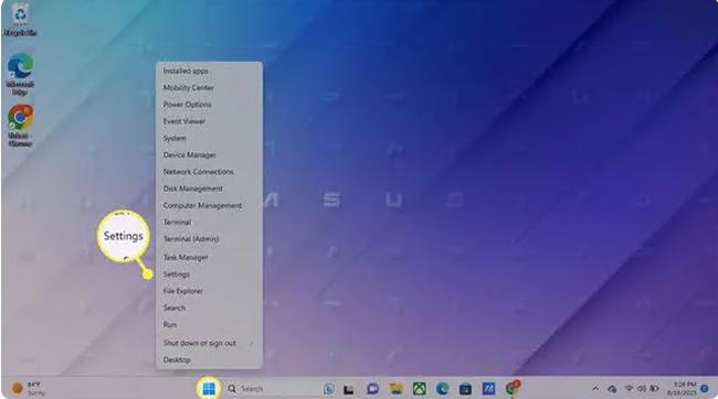 打开 Windows 设置。右键单击任务栏中的“开始”菜单,选择“设置”,或按Windows 键+ i。