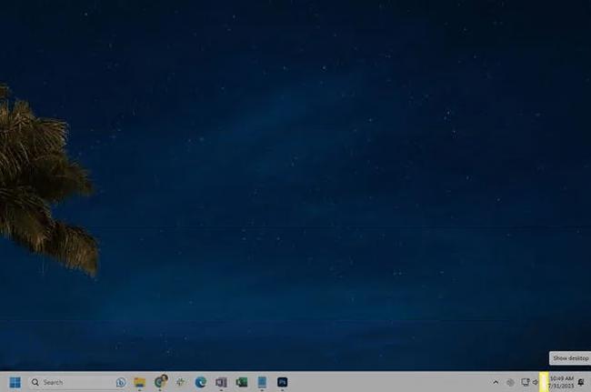 选择任务栏最右侧的“显示桌面”链接。您还可以创建自己的任务栏快捷方式。