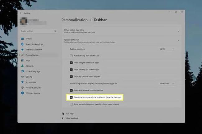 选中“选择任务栏的远角以显示桌面”旁边的复选框。
