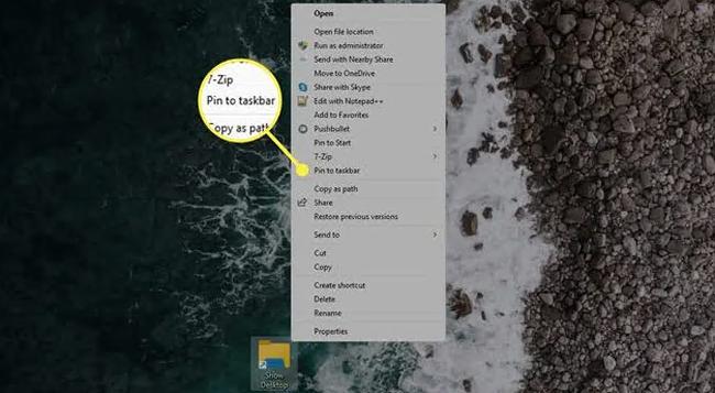 提示:如果您不希望快捷方式使用通用的黄色文件夹图标,您可以更改文件夹图标,但必须在将其添加到任务栏之前执行此操作。