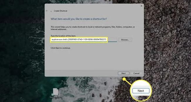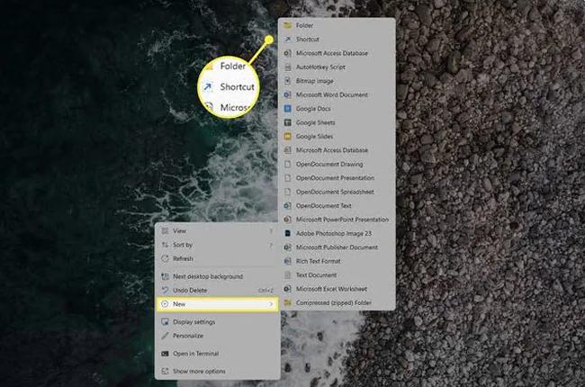 右键单击桌面并转到新建>快捷方式。