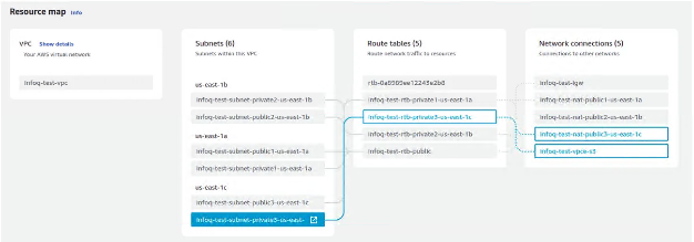 开发人员可以使用资源映射来了解虚拟网络的架构,查看其中有多少个子网,哪些子网与哪些路由表相关联,以及哪些路由表具有到 NAT 网关、互联网网关或网关端点的路由。VPC 资源映射在所有 AWS 区域可用。