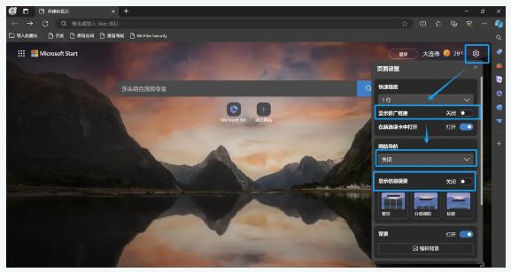 点击右侧的齿轮图标,关闭【显示推广链接】,关闭【网站导航】,关闭【显示信息提要】