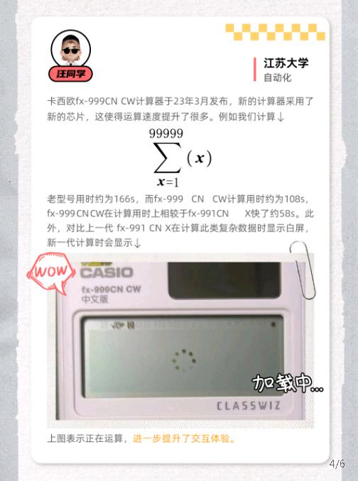 卡西欧fx-999CN CW计算器于23年3月发布,新的计算器采用了新的芯片,这使得运算速度提升了很多。例如我们计算