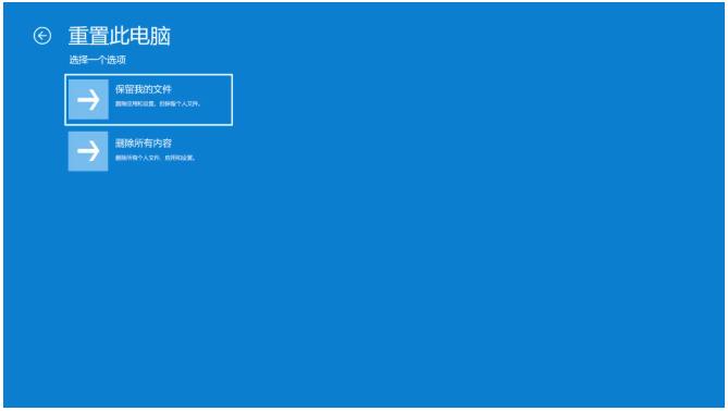 ④ 点击后,就会进入重置选项,可以【保留我的文件】或【删除所有内容】