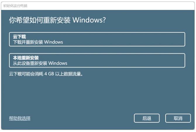 ④ 以删除所有内容为例,点击,会提示你如何重新安装 Windows?可以选择【云下载】或者是【本地重新安装】