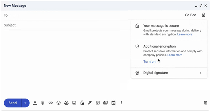 话虽如此,新选项——目前仅限于网络浏览器——允许用户在其域内外发送和接收加密电子邮件。加密涵盖电子邮件正文和附件,包括内联图像,但不包括主题和收件人列表。