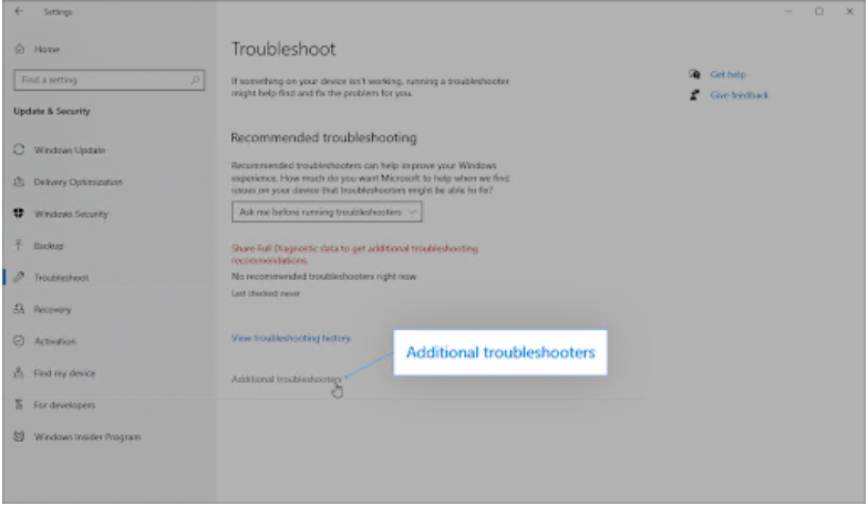 如果您不与 Microsoft 共享完整的诊断数据,请单击其他疑难解答链接并在此处找到网络适配器疑难解答。