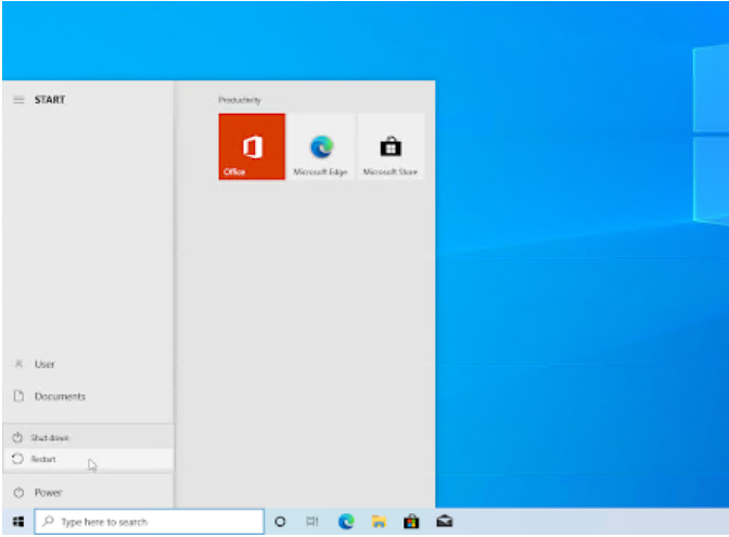 单击“电源”选项,然后选择“重新启动” 。这将关闭所有打开的应用程序并完全重新启动计算机。