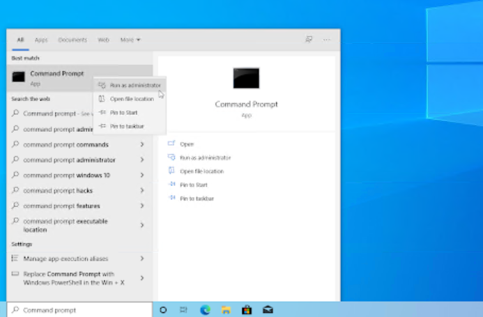 在搜索框中键入命令提示符。当您在结果中看到它时,右键单击它并选择Run as Administrator 。如果您使用的是没有管理员权限的本地帐户,请单击此处了解如何授予管理员访问权限。
