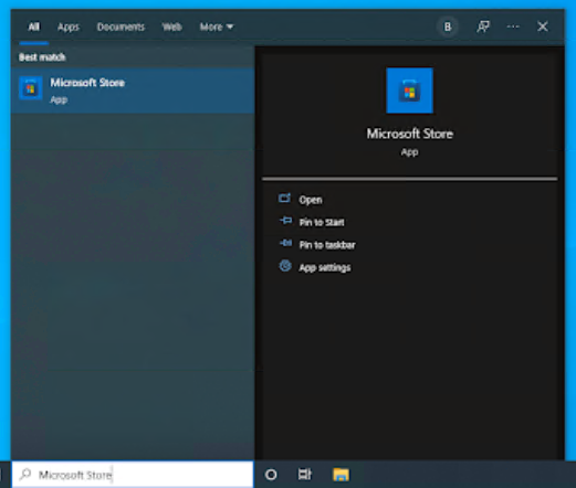 按键盘上的Windows + S键调出 Windows 10 中的搜索界面。在这里,键入 Microsoft Store,然后启动该应用程序。