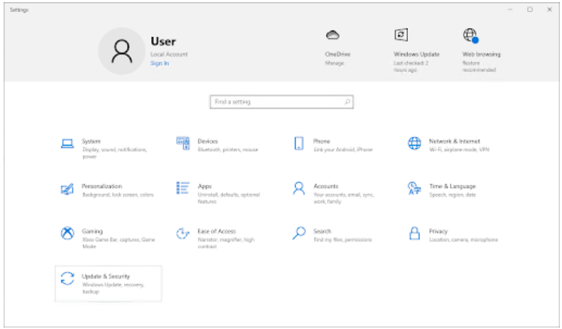单击“更新和安全”磁贴。您可以在此处找到大部分内置疑难解答程序。