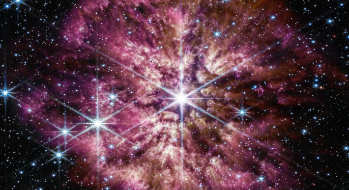 韦伯望远镜在2022 年 6 月的一些首次科学观测中瞥见了 WR 124 。美国国家航空航天局周二在得克萨斯州奥斯汀举行的西南偏南会议上发布的新图像揭示了人眼看不见的红外光中前所未有的细节。