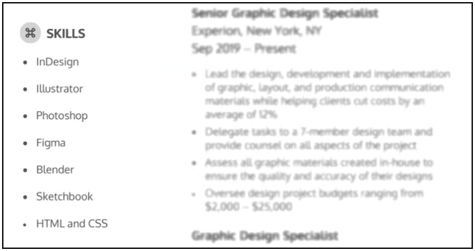几乎每个行业的公司都需要具有强烈设计感的创意人员来帮助他们开发有吸引力的产品和内容。无论你的专长是平面设计、UI/UX 设计还是插图,你都应该在简历中清楚地列出你的设计专长,以吸引雇主的注意。