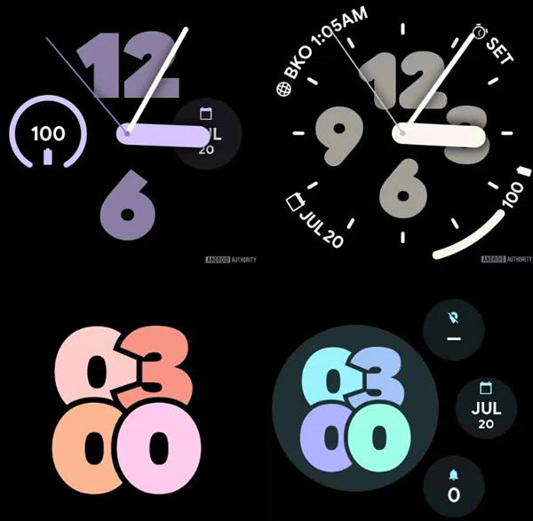 这些表盘来自“谷歌内部的匿名来源”,有四种风格:Accessible、Arc、Bold Digital 和 Analog Bold。