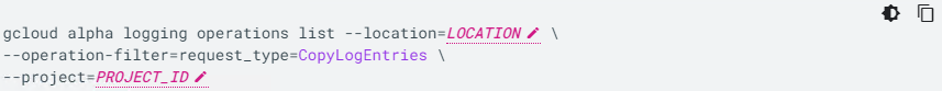 您可以使用 gcloud alpha logging operations 命令查看和管理复制操作,以便列出、查看和取消操作。
