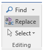 从“主页”选项卡的“编辑”组中,选择“替换” 。