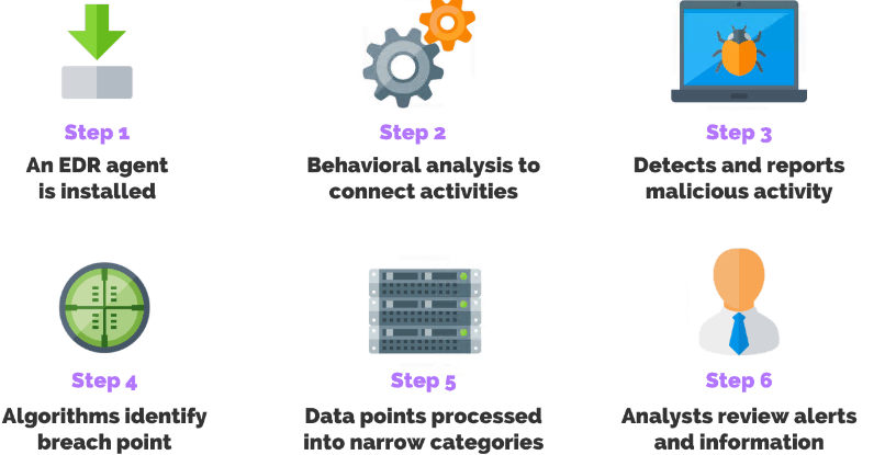 EDR 解决方案的工作原理是持续监控每个计算机端点上的活动,然后标记任何可疑行为,也称为证明端点安全。这包括保护计算机或服务器免受高级威胁。
