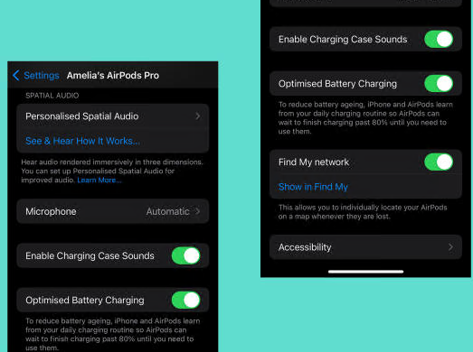 向下滚动到优化充电并确保此功能已打开 - 您可以通过确保它为绿色来检查它。通过启用此功能,您的 AirPods 将能够通过学习您的常规充电程序,尽可能延长电池寿命,这将有助于阻止电池老化和容量随时间损失。