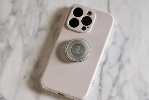 配备米色手机壳的 iPhone