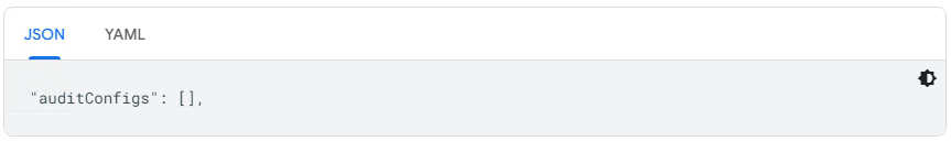 以下是 JSON 和 YAML 格式的审核配置示例。YAML 格式是使用 Google Cloud CLI 时的默认格式。