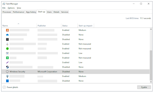 单击窗口右下角现在可见的“禁用”按钮。这将禁止应用程序在您启动设备时启动。