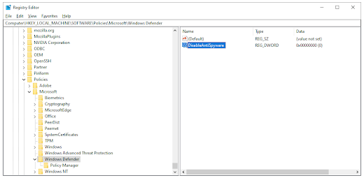 找到名为DisableAntiSpyware的注册表项> 然后双击它并将其值数据设置为 1。