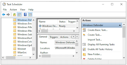 在 Windows Defender 文件夹中,找到中间窗格中的Windows Defender Scheduled Scan并双击它。