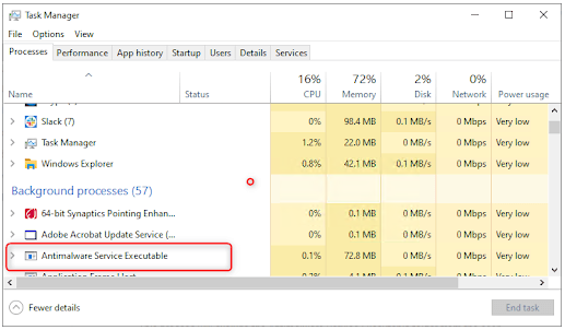但是,Microsoft 支持论坛上的许多用户报告显示,有时 MsMpEng.exe 也会导致 CPU 和内存使用率过高。一些用户还报告遇到 MsMpEng.exe 高磁盘使用率。