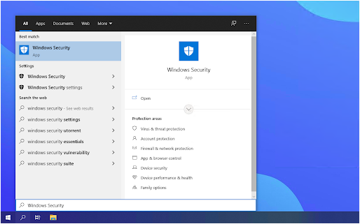 输入Windows Security并从搜索结果中启动它。