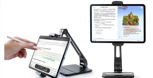 Satechi的铝制支架和集线器因其可折叠设计以及它将端口和充电功能集成到紧凑的 iPad 配件中而广受欢迎。支架本身向外旋转,露出隐藏的连接 USB-C 电缆和橡胶缓冲垫,使支架固定在办公桌上。背面有 4K HDMI 插座、1 个 USB-A 端口、1 个耳机插孔、SD 和 microSD 卡插槽以及 1 个 60W USB-C 充电接口。