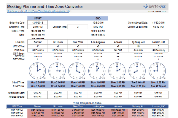 此会议计划程序电子表格旨在帮助您计划与不同时区的人进行电话会议和会议。
