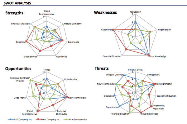 提前计划推出新产品。通过查看 SWOT(优势、劣势、机会和威胁)来衡量其在市场上已经存在的成熟公司中的地位。