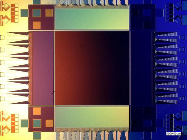 为了克服这些困难,该团队从其他探测器技术中汲取了灵感。他们借用了通用读出总线的想法,一次从整行或整列像素收集探测器信息。然而,总线的直接应用会在像素之间引入串扰,从而破坏设备的灵敏度。“读出总线通常的制造方式存在的问题是它们是对称的——任何能出去的东西都可以进来,”麦考恩说。“所以我们想,‘我们如何以不对称的方式将探测器耦合到总线?’”