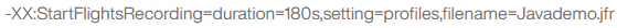 Java Flight Recorder,有时称为 JFR,收集应用程序的分析信息。它以前只能用于商业目的,但 OpenJDK 11 已将其开源。由于它的开销很低(大约 1%),我们可以将它用于生产应用程序。这些信息存储在一个 JFR 文件中,我们可以使用 JDK Launch Control 工具对其进行检查。使用以下命令启动 180 秒的 JFR 记录,数据将保存在 Javademo.jfr 文件中。