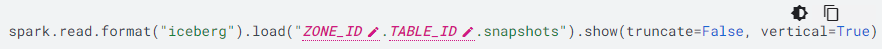 您可以使用 Apache Spark 获取 Iceberg 表的快照和历史记录。