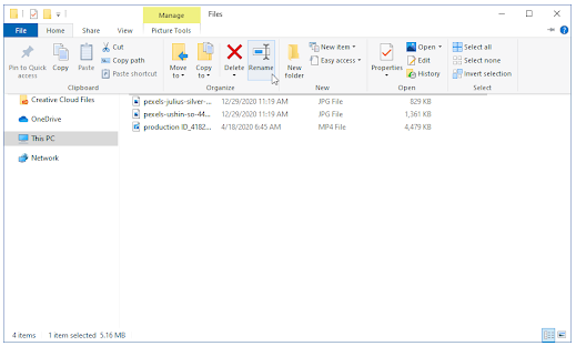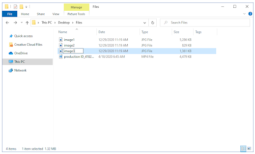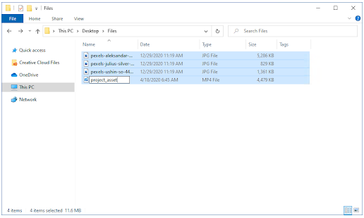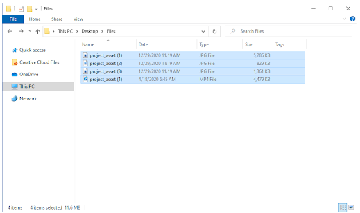 完成上述步骤后,您应该注意到所有文件都更改为相同的名称,唯一的区别是用于标识它们的数字。例如,将所有文件命名为“ project_asset ”将生成名为“ project_asset (1) ”和“ project_asset (2) ”的文件。